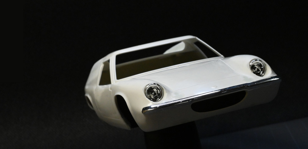 このヘッドライト部分の他、リア左右にバーティカルフィンを立てたり、サイドシルの形状変更やテールライトの変更などボディの改修がキット製作の主な内容になりますので、前2作のように時間がかかることは無いものと目論んでいます。