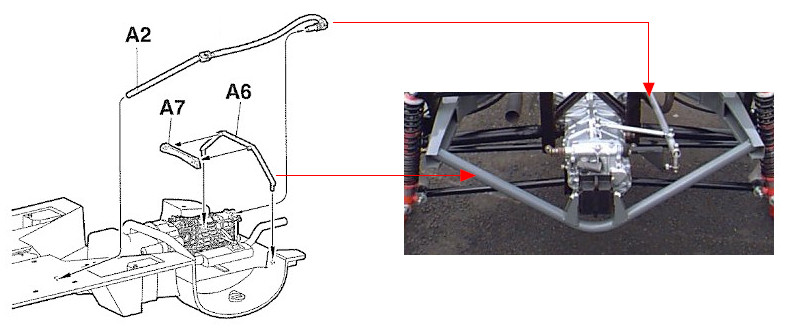 また「A2」のパーツは、ギアボックスから取り出すシフトのリンケージで、これがまた何ともカッコ悪く(悪口ばっかりですいません)外から見るとギアボックスの後端から下側左へニョキッと突き出ています。対してSr.1&2はギアボックスの上側右へスマートに?リンクされており外側からは見えません。