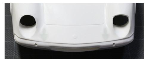 (少し上の方の画像と比べれば分かるかもしれませんが、バンパーの下側についても角ばっていたラインを丸く削り込みました。)