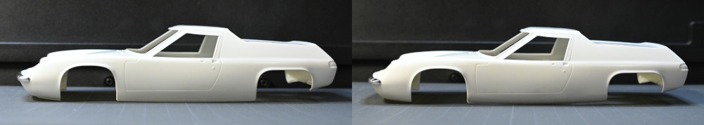 ただし横から見た際のヘッドライトの高さはほぼ同じで、裏側をパテで裏打ちしながら削り込んでライト位置を低くする作業量は同じようですね。