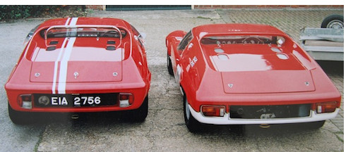 次の作業はテール周りの修正です。左の画像はヨーロッパSr.1(Type46)ではなく47GT(Type47)ですが、左側は前期型、右側はワイドになった後期型になります。しかもこの2台はかの「Team Lotus」、ロータスのワークスマシンの珍しい画像です。