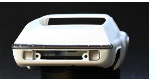 ちなみ画像は、新たにライトフレームを仕切るリブを取り付けたテール部分で、以前書いたように中央にはメッシュグリルを取り付ける予定ですが、さてエキパイをどのように配置するかも思案中です。(シャーシを固定するダボ穴があり、本来あるべきメッシュグリルの端から出せない。)