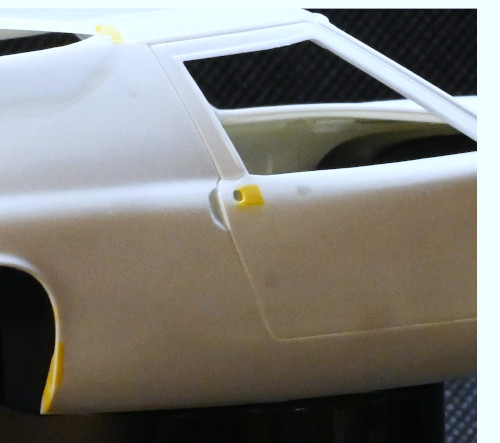 今回の作業はここまで。画像にはありませんが、テール下のエキパイがでてくる溝/穴を埋めたり、左右のワイパーの穴を塞いで中央に開け直したりしています。また、フロントウインドウの四隅とサイドスクリン上の「モール止め」を削り取り(Sr.1には無い)モールも出っ張り過ぎを薄くしています。(あとはミラーの取り付け位置を決めて穴を開けなきゃ。)